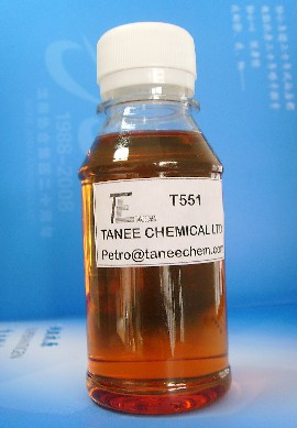 T551質(zhì)量與瑞士CIBAGEIGY公司REOMENT-38相當(dāng),它以配價鍵在金屬表面形成惰性膜或與金屬離子形成螯合物,從而抑制金屬對氧化反應(yīng)的催化加速作用。具有良好的抗氧化性能。該產(chǎn)品質(zhì)量穩(wěn)定,以微量(0.03-0.1%)同T501復(fù)合顯示優(yōu)異的抗氧增效作用,并降低T501用量,它被廣泛應(yīng)用于汽輪機(jī)油、油膜軸承油、工業(yè)齒輪油、變壓器油及循環(huán)油,但不能與ZDDP復(fù)合使用,以防發(fā)生沉淀。 理化性質(zhì)