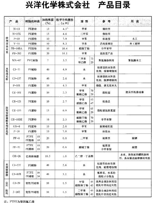 | PE、PTFE蠟漿產(chǎn)品目錄 |